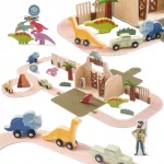 Wooden Felt Dinosaur Farm Track Scene Toy Set for Kids
