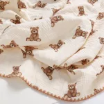 Experience the numerous benefits of our 4-Layer Baby Muslin Cotton Cartoon Bear Swaddle Blanket: