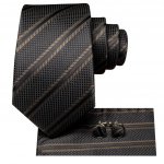 Step up your style game with our Black Brown Striped Necktie Set, perfect for weddings, parties, and professional events. This sophisticated set includes a meticulously crafted necktie, a matching handkerchief, and elegant cufflinks, ensuring you always look your best.