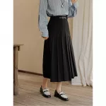Whether you’re heading to the office, attending a business meeting, or presenting at a conference, this skirt is your go-to choice for a polished and professional look. Pair it with a crisp blouse and heels for a complete outfit that exudes confidence and elegance. Its mid-calf length ensures a modest appearance, while the decorative belt and pleats add a stylish flair. The non-stretch fabric provides a structured fit, making it a reliable piece for any formal occasion.