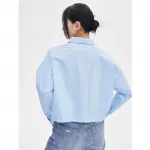 This blouse isn’t just about good looks. Its loose, oversized fit and crop length make it a trendy yet practical choice for various activities. Whether you’re heading to a brunch, a casual meet-up with friends, or simply enjoying a relaxed weekend, this blouse offers the ideal balance between style and comfort. The turn-down collar and single-breasted closure add a classic touch, while the pocket detailing provides a hint of functionality and charm.