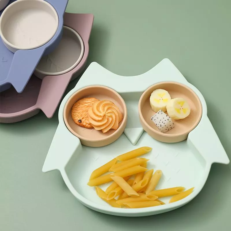Make Mealtime Fun and Easy with Our Baby Silicone Owl Plate Feeding Set
