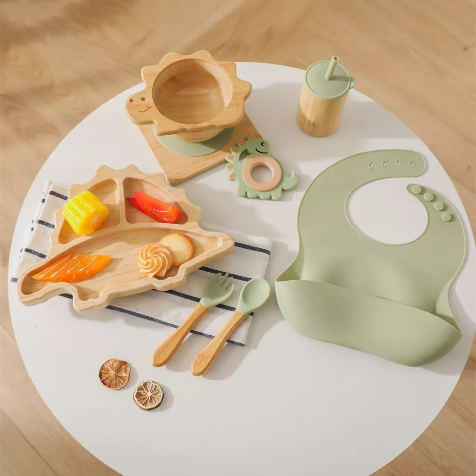 This set stands out with its charming dinosaur theme and thoughtful design. The combination of bamboo’s sustainability and silicone’s safety creates a worry-free dining experience for parents. It’s more than just tableware—it’s a companion that grows with your child, from early feeding stages to independent eating.