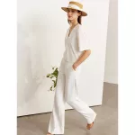 What sets these trousers apart is their combination of style and practicality. The high-waisted, wide-leg design is not only trendy but also incredibly flattering, making them a must-have for any wardrobe. The slight stretch fabric ensures all-day comfort, while the solid colors and minimalist design make them easy to pair with any top or accessory.