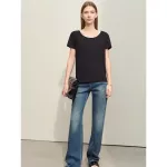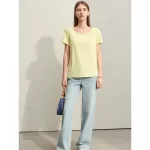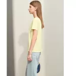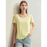 Whether you’re heading to the office, a casual outing, or a weekend brunch, this t-shirt is your go-to choice. Its minimalist design makes it easy to pair with jeans, skirts, or trousers, allowing you to create various looks with ease. The solid color and clean lines offer a timeless appeal, making it a staple piece in any wardrobe.