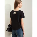 The Minimalist Women’s Large U-Neck Slim Stretch T-Shirt stands out with its combination of high stretch and slim fit, providing both comfort and a flattering silhouette. The blend of spandex, viscose, and polyamide ensures durability and a soft touch against your skin. The appliqué decoration adds a subtle yet distinctive detail, enhancing its overall look without overwhelming the minimalist aesthetic.