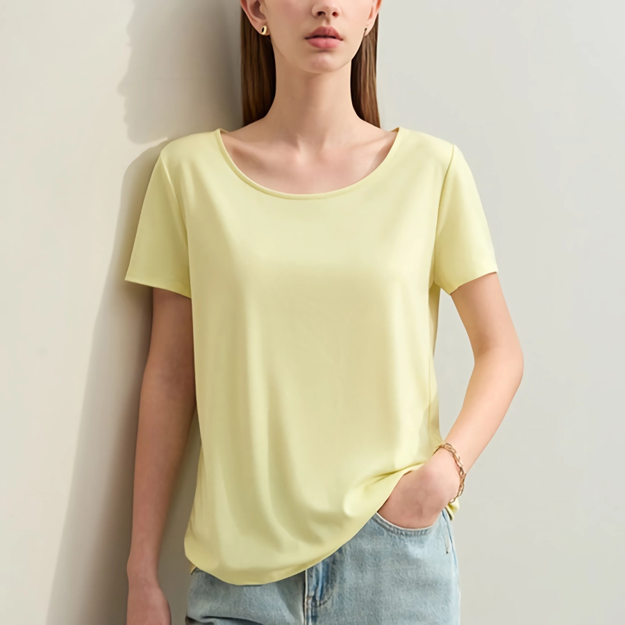 Chic and Comfortable Minimalist Women’s Large U-Neck Slim Stretch T-Shirt