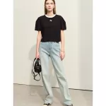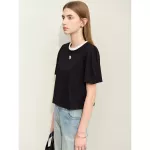 What makes this T-shirt special is its attention to detail. The embroidery adds a delicate touch, elevating the overall look. The blend of materials ensures durability and comfort, making it a reliable choice for everyday wear. Its minimalist design allows for easy pairing with various bottoms, from jeans to skirts, making it a staple piece in any wardrobe.