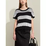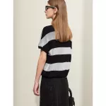 This versatile jumper features a loose fit and a striking wide striped pattern, making it a standout piece in any wardrobe. The crewneck design and raglan sleeves add a touch of classic style, while the stretchy drawstring short sleeves provide a customizable fit for maximum comfort.