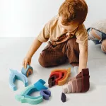 These Montessori Nesting Blocks are ideal for children who love to build, explore, and create. The soft, flexible silicone material is gentle on little hands and teeth, making it safe for teething toddlers. With CE certification, you can be confident in the safety and quality of our product. These stackers are designed to encourage open-ended play, allowing children to experiment with different shapes, sizes, and colors while developing critical thinking skills.