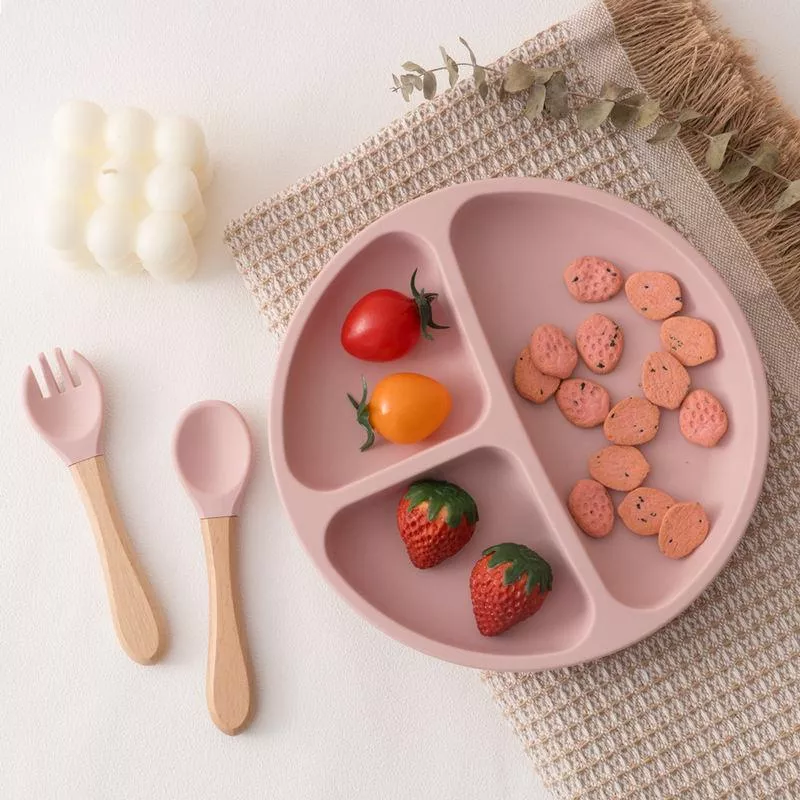 Our 3PCS Silicone Baby Tableware Set with Wooden Handle is designed to make mealtime a breeze for both parents and children. The high-quality, BPA-free silicone ensures safety and durability, while the non-slip suction base keeps the dish securely in place. This set is perfect for all ages, from newborns to toddlers, making it a versatile addition to your kitchen. The easy-to-clean material and stylish design make it a practical and elegant choice for any family. Encourage your child’s self-feeding journey and reduce mealtime messes with this must-have baby tableware set.