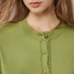 This cardigan stands out with its elegant tassel edge detail, adding a unique and stylish twist to a classic piece. The button decoration not only enhances its visual appeal but also offers a subtle nod to timeless fashion. With its regular fit and slight stretch, this cardigan provides a comfortable and flattering silhouette for women of all ages, especially those in their middle age who appreciate both style and practicality.