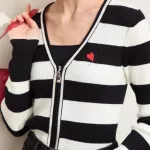 Crafted with a unique striped pattern and detailed embroidery, this cardigan adds a touch of sophistication to any outfit. The full-length sleeves and regular clothing length make it a versatile piece for your autumn and winter wardrobe. Whether you’re heading to the office or out for a casual evening, this cardigan is your go-to choice for effortless style.