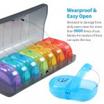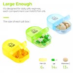 - Extra Large Capacity: Each compartment measures 2.8 x 1.7 x 0.75 inches, and the overall size is 5.8 x 3.2 x 1.7 inches, allowing you to store a week’s worth of medications, including large pills like fish oil.