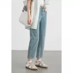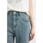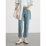 What sets these jeans apart is their impeccable fit and timeless style. The high-waisted design accentuates your waistline while the straight leg cut elongates your legs, giving you a sleek and sophisticated appearance. The fabric is both durable and comfortable, ensuring that these jeans will be a favorite for seasons to come. The moderate softness provides just the right amount of comfort without compromising on structure, making them ideal for all-day wear.