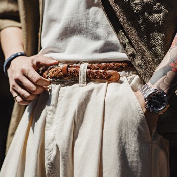 Vintage Woven Vegetable Tanned Cowhide Leather Belt – Men’s Versatile Brown Belt