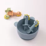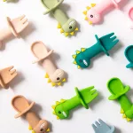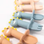 Make Mealtime Fun with the Baby Silicone Spoon & Fork Set – Cartoon Dinosaur Feeding Tableware