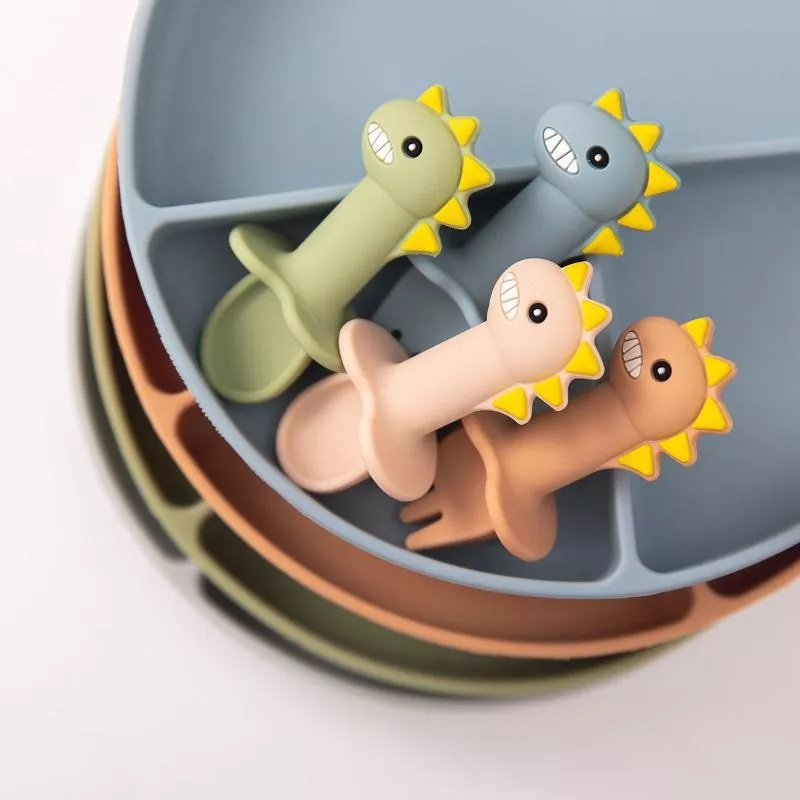 Make Mealtime Fun with the Baby Silicone Spoon & Fork Set – Cartoon Dinosaur Feeding Tableware