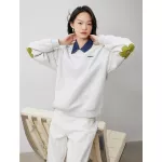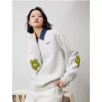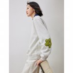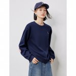What sets this sweatshirt apart is its unique flower patchwork on the sleeves, adding a touch of femininity and charm to a classic silhouette. The solid pattern makes it versatile and easy to pair with your favorite jeans, skirts, or trousers, making it a staple in your autumn and winter wardrobe.
