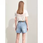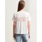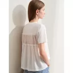 Elevate your tyle with our Minimalist Bead Embroidered Mesh Short Sleeve Tee. Designed with the modern office lady in mind, this top blends classic style with a touch of contemporary flair. Crafted from high-quality mercerized cotton, this tee offers a slight stretch for a comfortable and flattering fit.