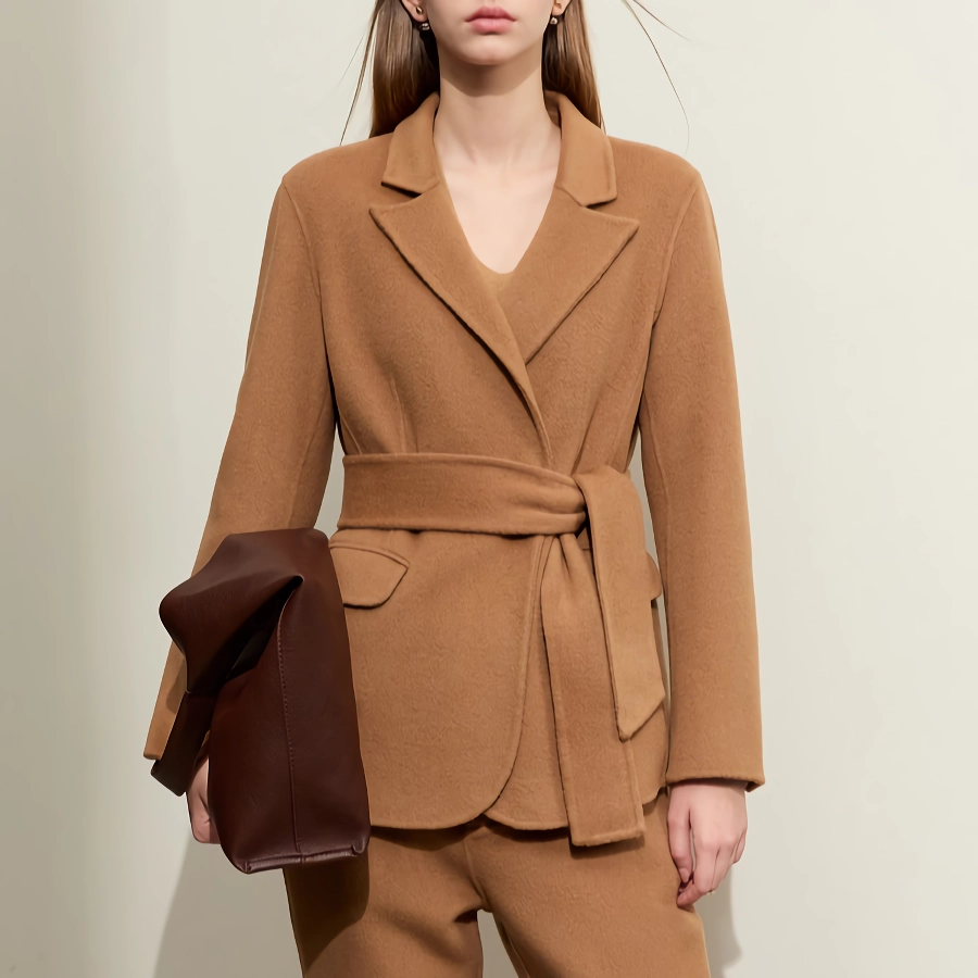 Step into the world of sophisticated style with our Minimalist Women’s Woolen Coat & Casual Pants Set. This elegant ensemble is perfect for the modern woman who values both fashion and function. Crafted from a luxurious blend of wool, alpaca, and lyocell, this set promises warmth and comfort without compromising on style. The double-sided tweed jacket features a slim fit, notched collar, and a chic belt to cinch the waist, creating a flattering silhouette. Paired with solid casual pants, this outfit is a must-have for your wardrobe.