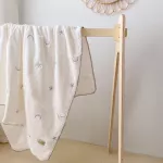 What sets our blanket apart is its meticulous craftsmanship, combining traditional muslin cotton with modern elegance. The delicate lace edges and charming cherry embroidery make it a delightful addition to your baby’s essentials. Whether you’re looking for a practical swaddling solution or a thoughtful gift, this blanket offers both style and comfort in one.