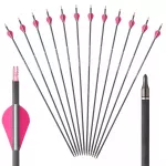 Our Pure Carbon Arrows come in three spine options: 300, 350, and 400, each tailored to meet the needs of different archery styles and bow types. The total arrow length is 805mm with a shaft length of 762mm, providing the ideal balance and stability for your shots. The arrows feature a sleek design with 2 pink and 1 white feather, and a transparent pink tail, combining aesthetics with functionality.