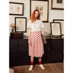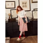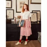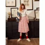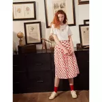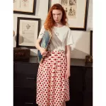 The unique combination of classic design and modern details sets this skirt apart. The polka dot print adds a fun and youthful vibe, while the button decoration provides a touch of sophistication. The high-quality cotton fabric ensures durability and breathability, making it a practical choice for everyday wear. With its flattering A-line silhouette and comfortable fit, this skirt is a must-have for any fashion-forward woman.