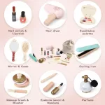 What sets our Wooden Baby Pretend Makeup Set apart is its combination of educational value and playful design. The Montessori-inspired approach ensures that playtime is not only fun but also a rich learning experience. The set encourages creativity and imaginative play, helping children explore different roles and scenarios. The realistic design of the makeup items allows children to mimic adult activities, enhancing their understanding of the world around them. The use of natural, non-toxic materials ensures that the toys are safe for children and kind to the environment.